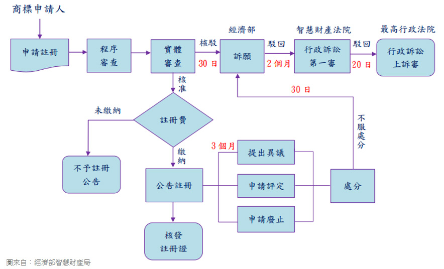 商標註冊及其他關於商標的各項申請規費,費用如下:一、商標申請送審階段應繳納之規費:指定使用之商品為第1類至第34類者,同類中20種以下商品,每類3,000元;同類中21種~60種以下商品,每類5,000元;同類中61種以上商品,每類9,000元。而指定使用之服務為第35類至第45類者,每類3,000元。